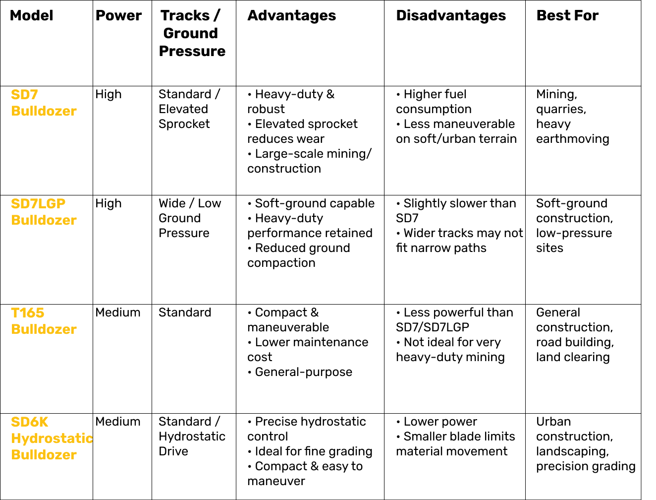 Side view of the HBXG SD7 bulldozer showing tracks and cabin
